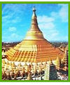 This is Shwedagon Pagoda, incredible mass contains over sixty tons of gold, more than is housed in the Bank of England (In 1813). The spire is covered with more than 13,000 gold plates, the vane at the top studded with 1400 precious rubies and sapphires and crown by 5,000 diamonds weighing 2,000 carats. One enormous 76 carats diamonds is positioned to catch the first light of the morning sun.